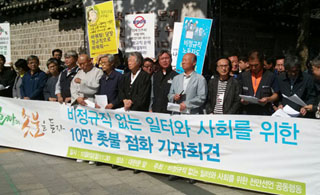 비정규직 없는 일터와 사회를 만들기 위한 릴레이 촛불 행진이 점화됐다. 각계각층 인사 1천27명은 오는 27일 대규모 촛불행진 개최를 선언하며 ...