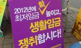 공동투쟁연대는 3.8 세계 여성의 날을 맞아 8일 오후 홍익대학교 정문 앞에서 기자회견을 통해 “1만인 선언을 적극 조직하고, 최저임금 인상 투...