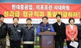 현대중공업사내하청지회는 13일 기자회견을 열고 현대중공업과 현대미포조선 사내하청노동자의 성과금을 정규직과 동일 지급하라고 촉구했다.