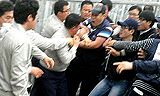 비정규직노조 공장출입 투쟁 이틀째..주먹으로 얼굴 가격