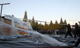 40분의 결의대회를 마치고 참가자들은 상징의식으로 정문에 설치된 컨테이너의 일부를 끌어내렸다.
