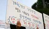 제대로 먹지도 씻지도 못하고 하루종일 왕복 8차선 도로를 달리는 자동차 소음과 모기에 시달리면서도 아직 7명의 조합원들과 민주노총 김진숙 지도위...