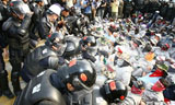 민주노총 대전, 충남, 충북지역 조합원, 금속노조 산하 조합원 2천여 명이 유성기업 아산공장 앞에 오후 3시 30분부터 모여 유성기업 경찰병력 ...