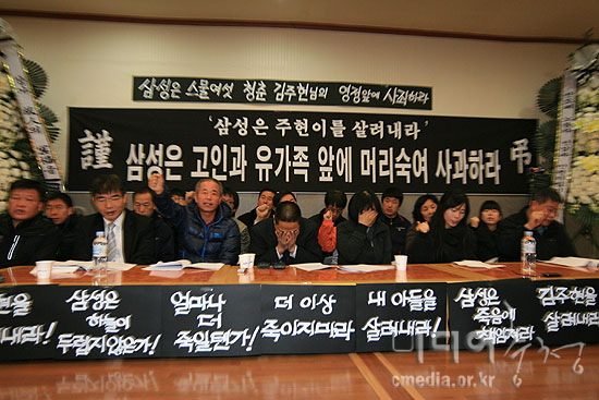 삼성LCD 천안공장 투신자살 노동자 고(故) 김주현 씨 유가족이 15일 낮 12시경 회사측과 합의함에 따라 17일 오전 9시 발인한다. 사망 9...