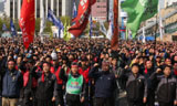 민주노총은 8일 오후 3시 부산역 광장에서 '정리해고 철회 및 노조법 전면 재개정 민주노총 총력결의대회'를 열고 "민주노총 지도부가 구속을 각오...