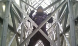 금속노조 문철상 부산양산지부장과 채길용 한진중공업지회장이 크레인 고공농성에 들어간 14일 오후 2시 민주노총부산본부는 두 농성자가 올라간 한진중...