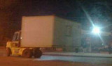 현대차 아산공장 사측 직원, 경비들이 정문 도로 건너편에 설치된 컨테이너 농성장을 지게차로 떠서 강제 철거했다. 다행히 농성장 밖에 사람들이 있...