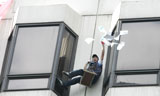 이상길 사회연대연금지부 수석부지부장은 이날 오후 3시 30께 8층 높이의 국민연금관리공단 건물 옥상에서 밧줄을 타고 내려와 고공농성에 돌입했다.
