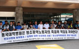 (가칭)동국대경주병원 청소용역노동자 사망 진상규명 및 직접고용 쟁취를 위한 공동대책위원회는 25일 오전 11시 동국대학교경주병원 현관 앞에서 기...