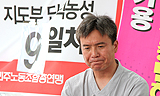 현대기아차 정문 앞에서 온 몸으로 쏟아지는 비를 맞으며 5일째 농성을 하고 있는 이백윤 금속노조 동희오토 사내하청지회장이 힘찬 발언을 한다. 동...