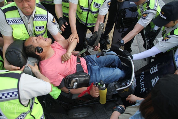 장애등급제·부양의무제 폐지 공동행동(아래 공동행동)은 서울 광화문역 농성 1001일째인 지난 18일부터 출퇴근 시간에 주요 도로를 점거하는 방식...