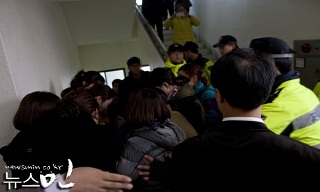 19일 오후, 강남대로에 용역반 130여 명이 또 다시 들이닥쳤다. 관광버스 두 대에 나누어 탄 용역반들은 두 팀으로 나누어 강남대로 양 옆에서...