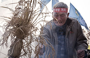 1만 여명의 농민들이 서울 시청광장에서 쌀을 태우며 한-중FTA 비준 거부와 안전한 먹거리를 위한 쌀 전면 개방 반대를 외쳤다.