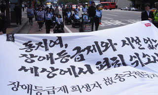 장례는 장애인단체, 정당, 시민사회단체 인사 등 150여 명이 참여한 가운데 “장애등급제 희생자 故송국현 동지 장애인장”으로 거행됐다. 참가자들...