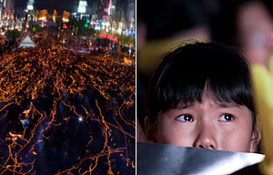 거대한 슬픔을 공유한 사람들은 “아이들을 살려내라”며 진상규명과 박근혜 대통령의 책임을 묻는 촛불로 안산 번화가를 덮었다.