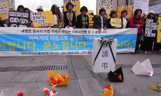 박근혜 대통령 면담과 김시곤 KBS보도국장 파면, KBS사장의 공식적인 사과 등을 요구하며 청와대 인근에서 연좌 농성을 벌이던 세월호 희생자 유...