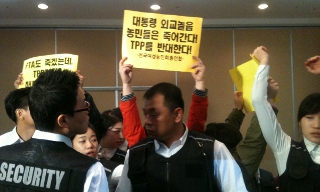 아수라장으로 진행된 환태평양경제동반자협정(TPP) 공청회 2주 만에 정부가 또다시 기습적으로 한국의 TPP ‘참여 관심’ 입장을 밝혀 반발이 확...