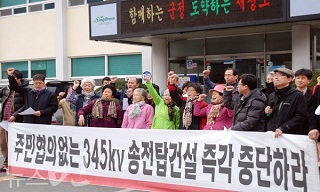 1년째 송전탑 건설을 둘러싸고 한국전력과 싸움을 하고 있는 경북 청도군 각북면 삼평1리 주민들과 대구경북지역 시민사회단체가 ‘청도345kv송전탑...
