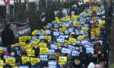 13일, 양재동 현대기아차그룹 본사 앞 전국금속노조(금속노조) 간부 3천여명이 결집했다. 금속노조는 이날, 심야노동 철폐, 불법파견 정규직화, ...