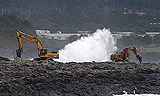 해군이 20일 오전부터 굴삭기 2대를 동원해 제주해군기지 공사를 강행, 중덕 해안가 구럼비 바위가 깨지고 있다.