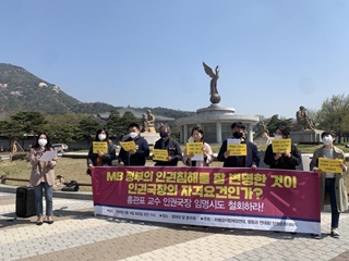 전국 시민사회단체들이 홍관표 법무부 인권국장 후보가 이명박 정부 시절 정부에 대한 국제사회의 인권 침해 비판의 방어에만 몰두한 인물이라며 임명 ...