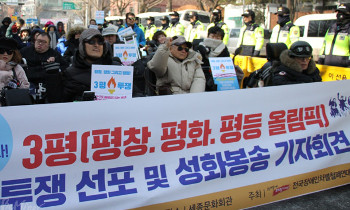 전국장애인차별철폐연대(이하 전장연)는 2일 세종문화회관 앞에서 "장애인에게 '평화'는 무엇보다 지역사회에서 함께 살아가기 위한 '평등'의 보장"...