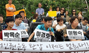 3명의 장애인운동 활동가가 벌금 탄압에 저항하며 스스로 구치소행을 택했다. 박옥순 전국장애인차별철폐연대 사무총장, 이형숙 장애등급제부양의무제폐지...