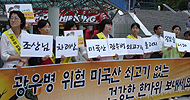 고향을 찾는 사람들에게 한미FTA와 미국산 쇠고기의 광우병 위험을 알리는 선전전이 서울역을 거점으로 21일 내내 진행된다.