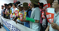 범국본 법원 앞에서 긴급 기자회견을 갖고 "범국본 두 대표에 대한 구속영장 청구는 한미FTA 저지운동에 대한 명백한 탄압으로, 즉각 중단되어야 ...