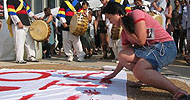 범국본은 28일 광화문 정부종합청사앞에서 기자회견을 갖고 "한미FTA 체결 중단"을 촉구하며 "집회 자유 보장, 대표자 영장철회, 금속노조 탄압...