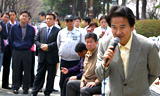 지난 18일부터 문성근 당대표 권한대행은 점심시간에 맞춰 여의도공원 국회의사당 방향 입구 귀퉁이에서 조그만 스피커에 10미터 길이의 마이크 하나...