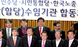 16일 민주당, 한국노총, 시민통합당은 국회에서 ‘야권 통합 수임기구 합동회의’를 열고, 통합을 공식 의결했다. 한국노총 조직 자체가 민주당의 ...