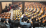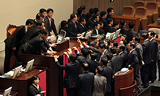 22일 오후 한나라당 의원들이 국회 본회의장을 전격 기습 점거했다. 한나라당 의원들은 이날 오후 국회 예결위 회의장에서 정책 의원총회를 가졌다....