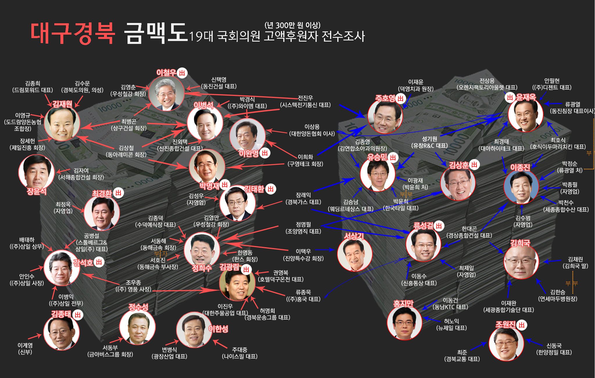 대구경북 19대 국회의원들이 2012년부터 2015년까지 4년간 받은 정치 후원금을 살펴봤다.