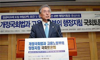 국회법 개정안이 청와대 거부권 행사 거론으로 논란이 일고 있는 가운데 17일 문재인 새정치연합 대표가 고용노동부의 노동시장 구조개혁을 위한 행정...