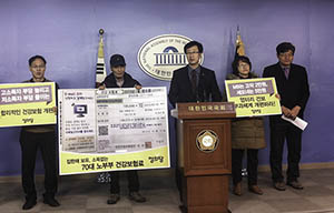 정의당과 시민단체들이 정부가 추진하려 했던 ‘소득중심 건강보험료 부과체계 개편안’을 즉각 공표하라고 촉구했다.