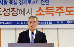 새정치연합 18대 대선 후보였던 문재인 의원이 경제성장 정책도 진보가 보수보다 훨씬 유능한 정치세력이라는 국민 신뢰를 얻기 위해 채택한 소득주도...