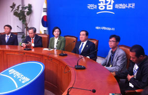 세월호 가족대책위가 24일 오후 국회를 찾아 박영선 새정치연합 원내대표와 문희상 비상대책위원장을 연이어 만나, 이후 세월호 특별법 협상 논의가 ...