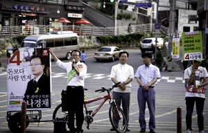 새누리당의 1인 시위에 야권의 맞불 1인 시위도 이어졌다. 노회찬 정의당 공동선대위원장은 자신의 페이스북에 “도와주면 잡아먹힙니다”라고 비꼬고,...