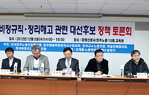 유독 2012년 대선에서 정리해고와 비정규직이 주요 의제로 부상한 이유는 뭘까. 지난 5일 민주노총과 민교협 등 교수 4단체가 주최한 ‘비정규직...