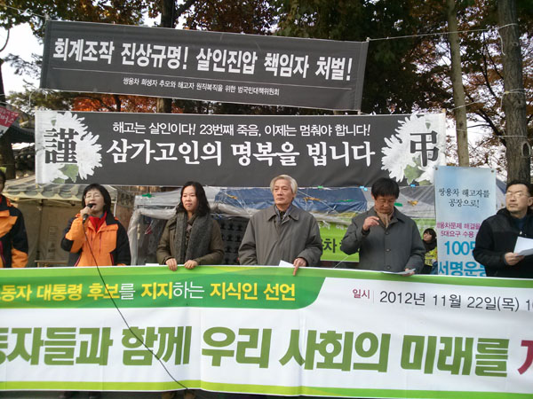 비정규직 노동자, 대학생 등에 이어 대학 교수, 연구자 등 지식인들도 김소연 노동자 대통령후보 지지선언에 동참하고 나섰다. 22일 오전 서울 대...