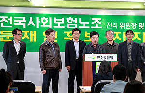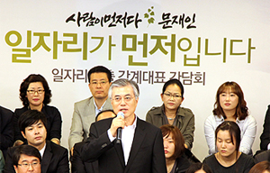특수고용직 노동자들이 문재인 민주통합당 대선 후보를 만난 자리에서 “말뿐인 공약을 믿지 않는다”고 선을 그으며 “노동3권 보장을 위한 연내 입법...
