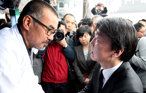 안철수 후보는 쌍용차 단식 농성장에서 김정우 금속노조 쌍용차지부장, 한상균 전 지부장 등과 간담회를 열고 “대선 이후가 아니라 지금 당장이라도 ...