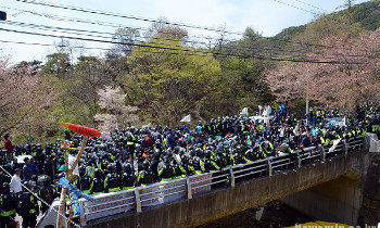 12일 오후 2시께 국방부가 사드(THAAD·고고도미사일방어체계)기지 공사 장비 반입 시도를 중단하면서, 경찰과 시민 150여 명 간 대치 상황...