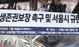 뉴타운 도시재개발 용산4구역 120학살의 현장, 남일당 합동분향소 앞, 길가에 핀 꽃들이 우리를 슬프게 한다.