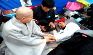 조계종 총무원장 자승스님이 대한문 쌍용차 분향소를 방문해 단식 중인 김정우 지부장을 면담했다. 조계종 총무원장이 현안 투쟁 사업장을 방문한 것은...