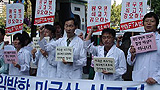 '광우병 위험 미국산 쇠고기 수입 재개를 반대하는 보건의료인'들은 27일 미국 대사관 앞에서 기자회견을 갖고 수입중단을 촉구했다.