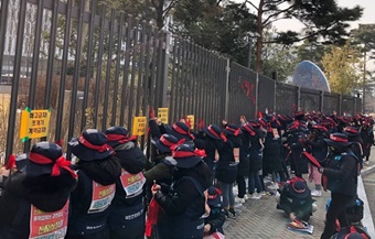5곳의 해고사업장 노동자들은 8일 오전 10시, 청와대 분수대 앞에서 기자회견을 열고 문재인 대통령이 공공부문 1천명의 해고 사태를 설 전에 해...