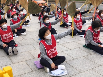 LG트윈타워 청소노동자들이 하루 경고 파업 후 천막 농성에 돌입했다. 이들은 노조를 결성하고 기본급 인상을 위해 1년 여간 사측과 교섭했지만 다...