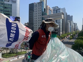 15일이면 땅을 밟을 줄 알았던 그가 324일째 강남역 사거리 CCTV 관제 철탑 쇠 바구니 안에 있다. 삼성 피해자 김용희 씨가 철탑에 올라갈...